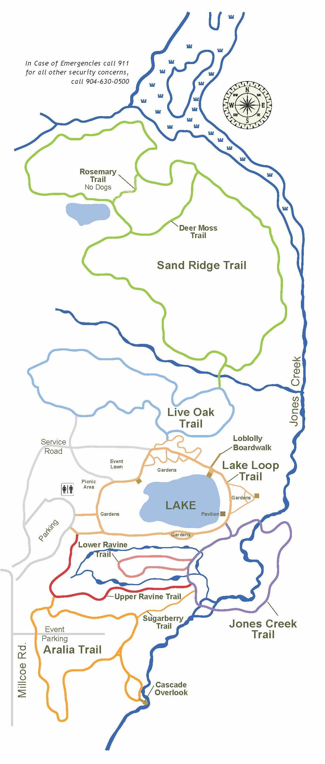 There are several different trails and routes you can go. On their map they list a total of 10 total trails. They include the Aralia Trail, Jones Creek Trail, Sugarberry Trail, Upper Ravine Trail, Lower Ravine Trail, Lake Loop Trail, Live Oak Trail, Sand Ridge Trail, Deer Moss Trail, and Rosemary Trail (No Dogs Here).
